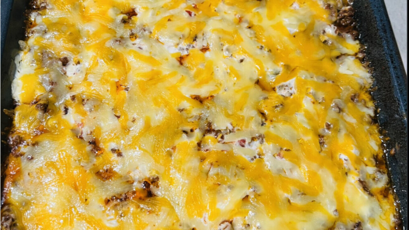 - Spread the shredded colby jack/american cheese evenly over the sour cream.