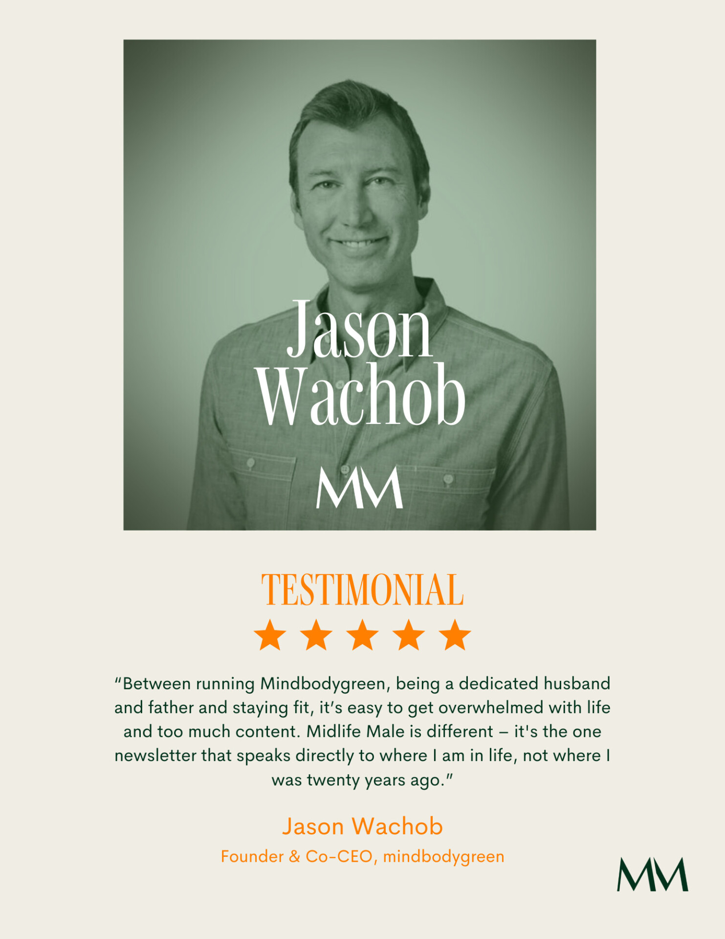 Midlife Male is the premiere digital publication and lifestyle brand for men 40+ looking to maximize midlife. With over 35,000 weekly readers, the flagship newsletter is delivered every Sunday and includes high-value original columns, exclusive conversations, and the very best curated recommendations across all our 6Fs (family, fitness, finance, fashion, food, and fun).
